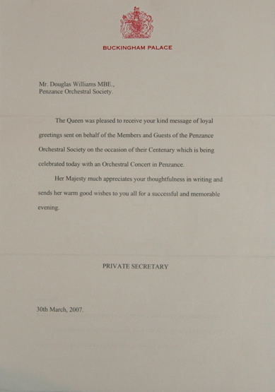 Judith Bailey recieves from Douglas - the letter from the Queen to mark the
