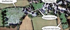 Paul Church and graveyard Paul Cholera Cemetery - view from top of field Cholera Cemetery gate