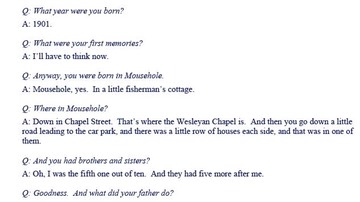 An interview with Agnes Oats (Gruzelier) in 1986, which was first transcribed for Paul online parish magazine in 2002, is now part of the Gruzelier family tree. Thanks to everyone in making the transcript available, as it throws a light on what life was like in Mousehole in early 1900s.