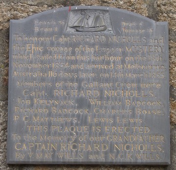 On November 18th 1854, the 'Mystery' set sail from Newlyn harbour. She arrived at Melbourne in March 1855.