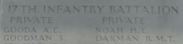 Sydney Goodman was born 1889 in Penzance. He emigrated to Australia, he then joined the Australian Imperial Force and was killed in action at the Somme 15 Apr 1917 while serving with the 17th Infantry Battalion.